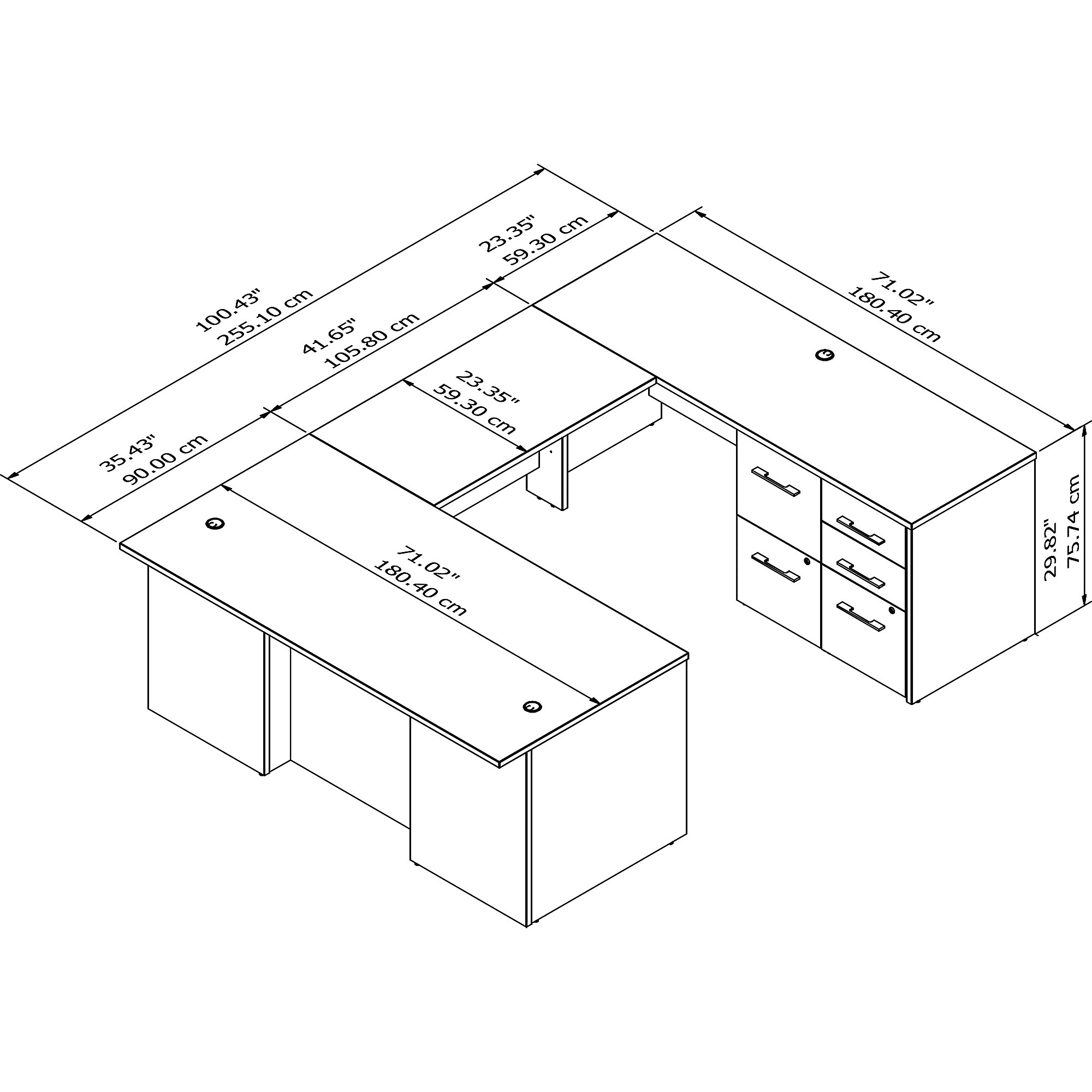 BBF Office 500 72W U Shaped Executive Desk with Drawers