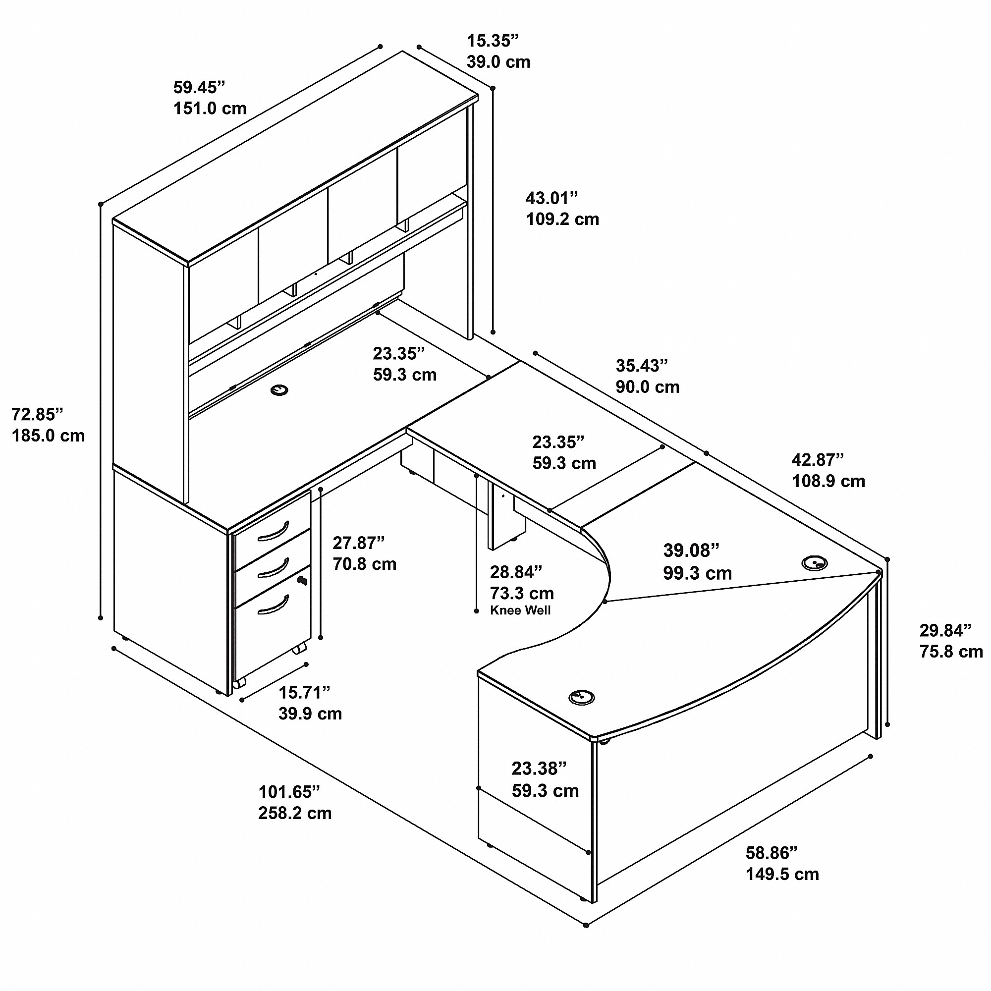 BBF Series C 60W Left Handed Bow Front U Shaped Desk with Hutch and Storage