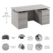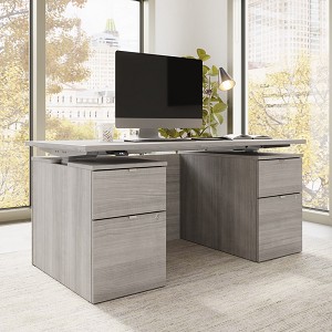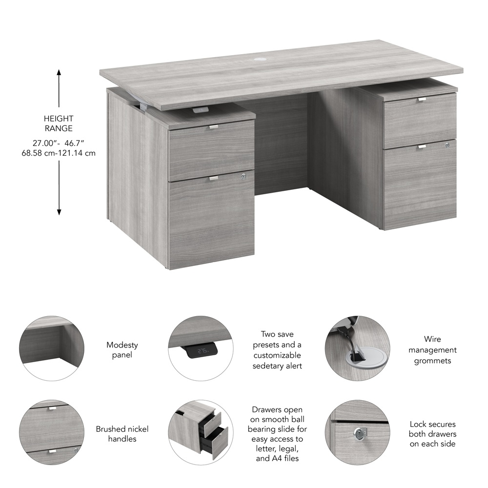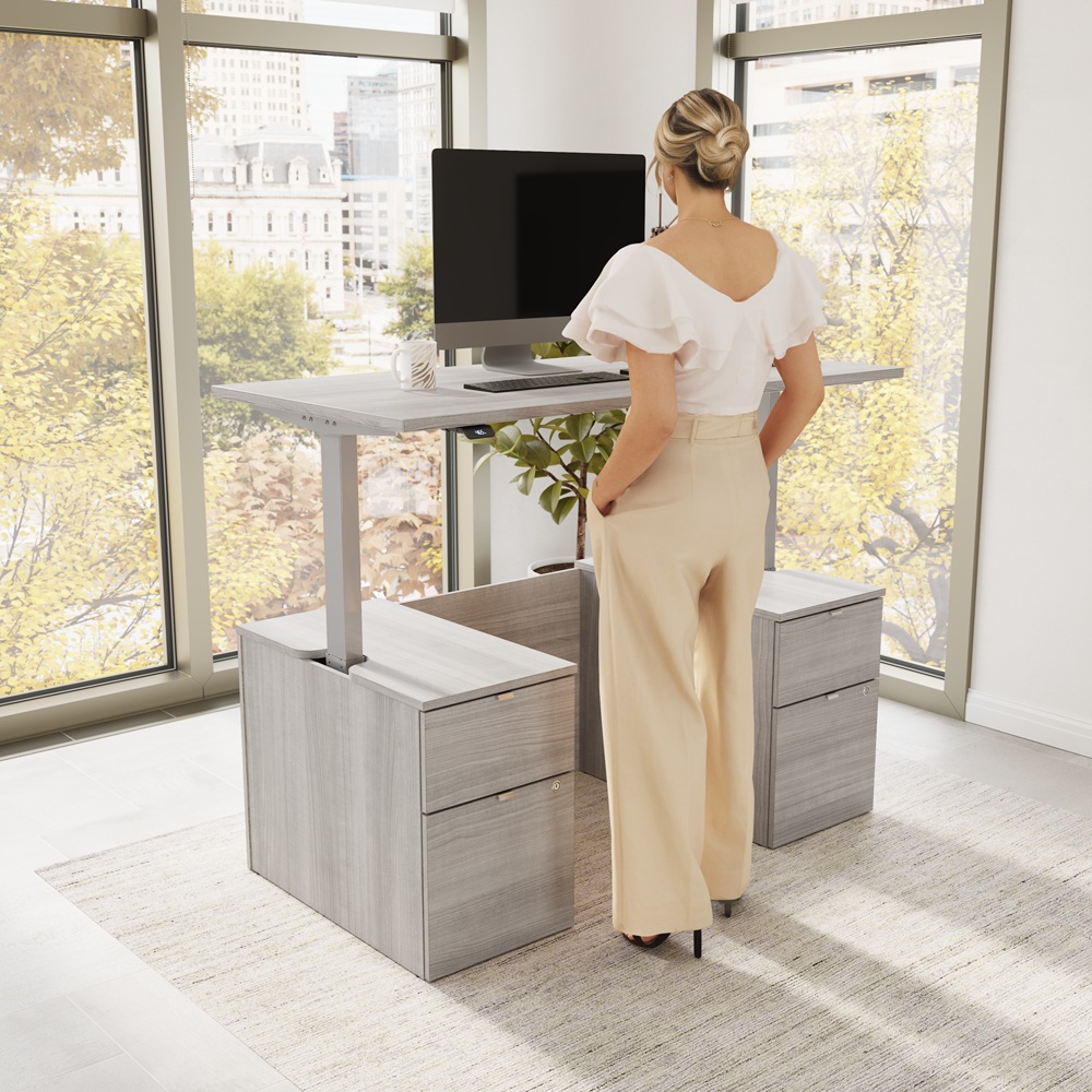 BBF Stratus 30" x 60" Platinum Gray w/ Metallic Gray Base Electric Standing Desk with Drawers