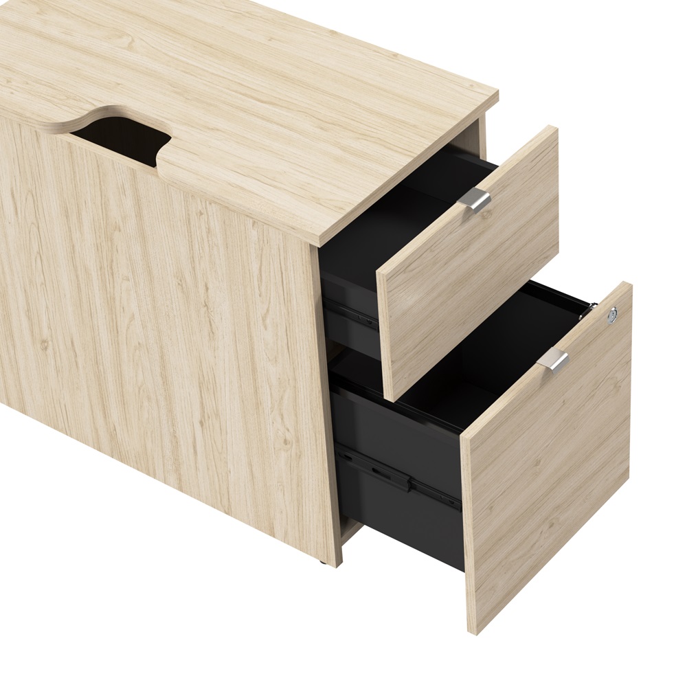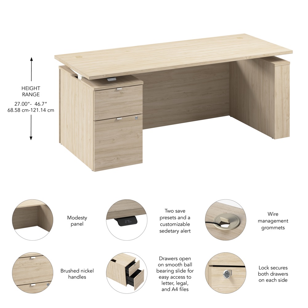 BBF Stratus 30" x 72" Natural Elm w/ White Base Electric Height Adjustable Standing Desk with File Cabinet