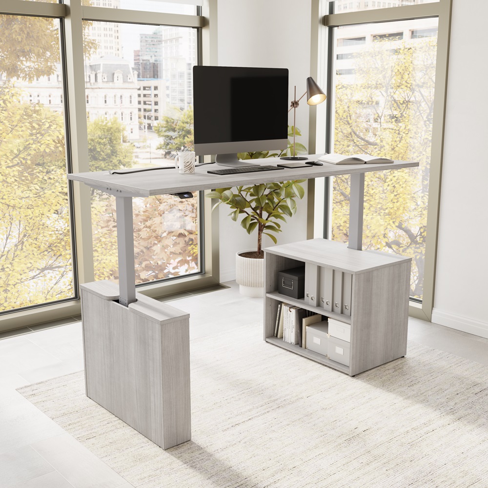 BBF Stratus 30" x 72" Platinum Gray w/ Metallic Gray Base Electric Height Adjustable Standing Desk with Bookcase