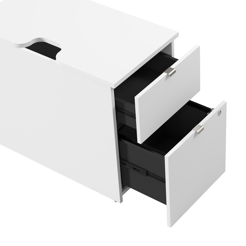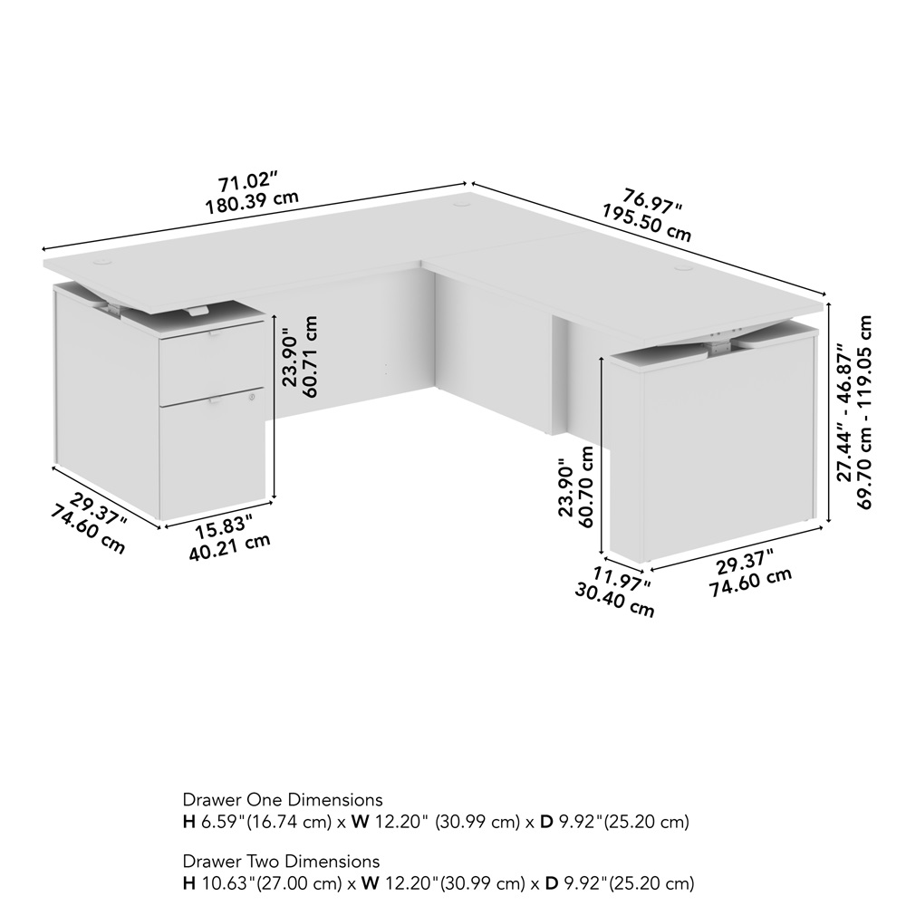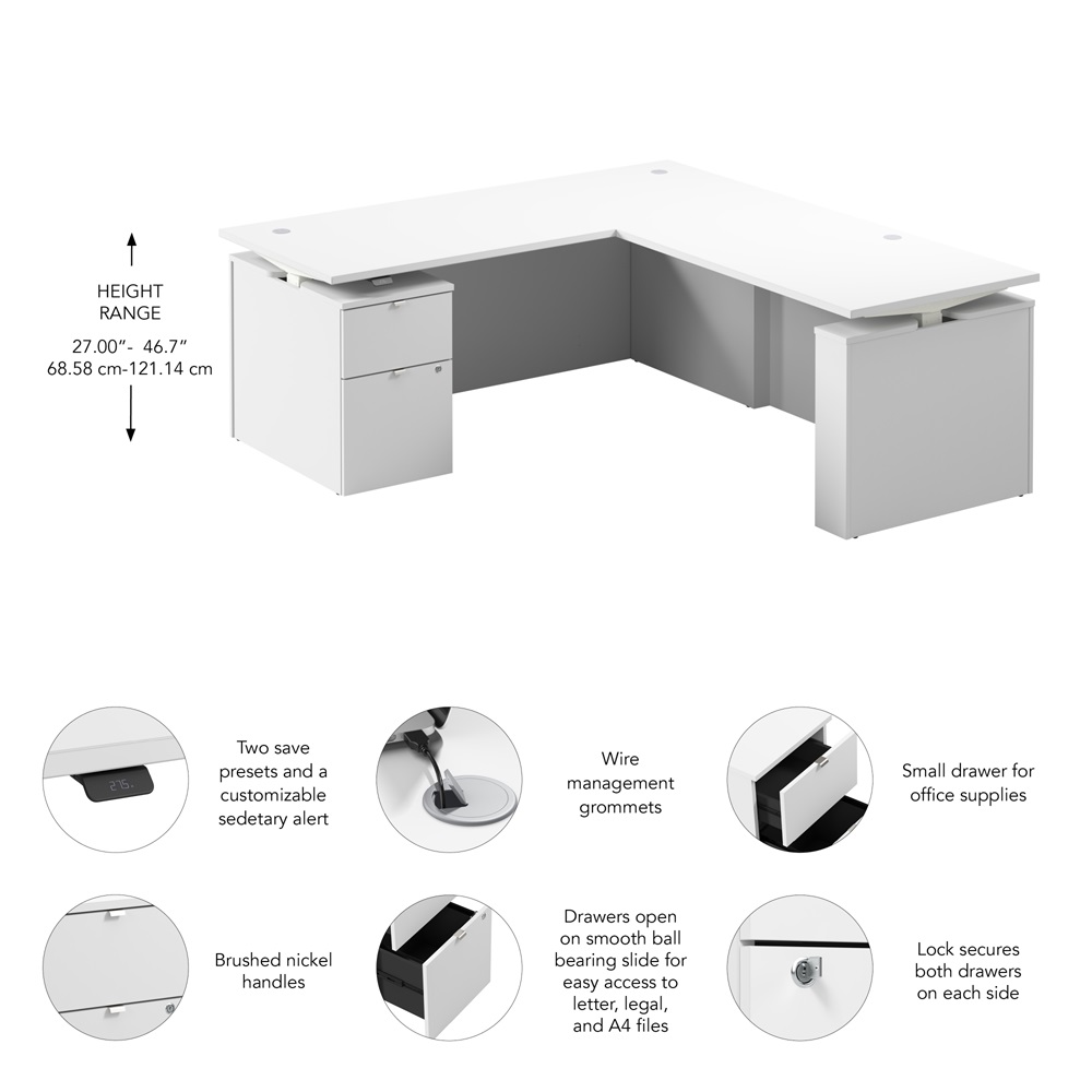 BBF Stratus 30" x 78" White w/ White Base Height Adjustable L Shaped Standing Desk with File Cabinet