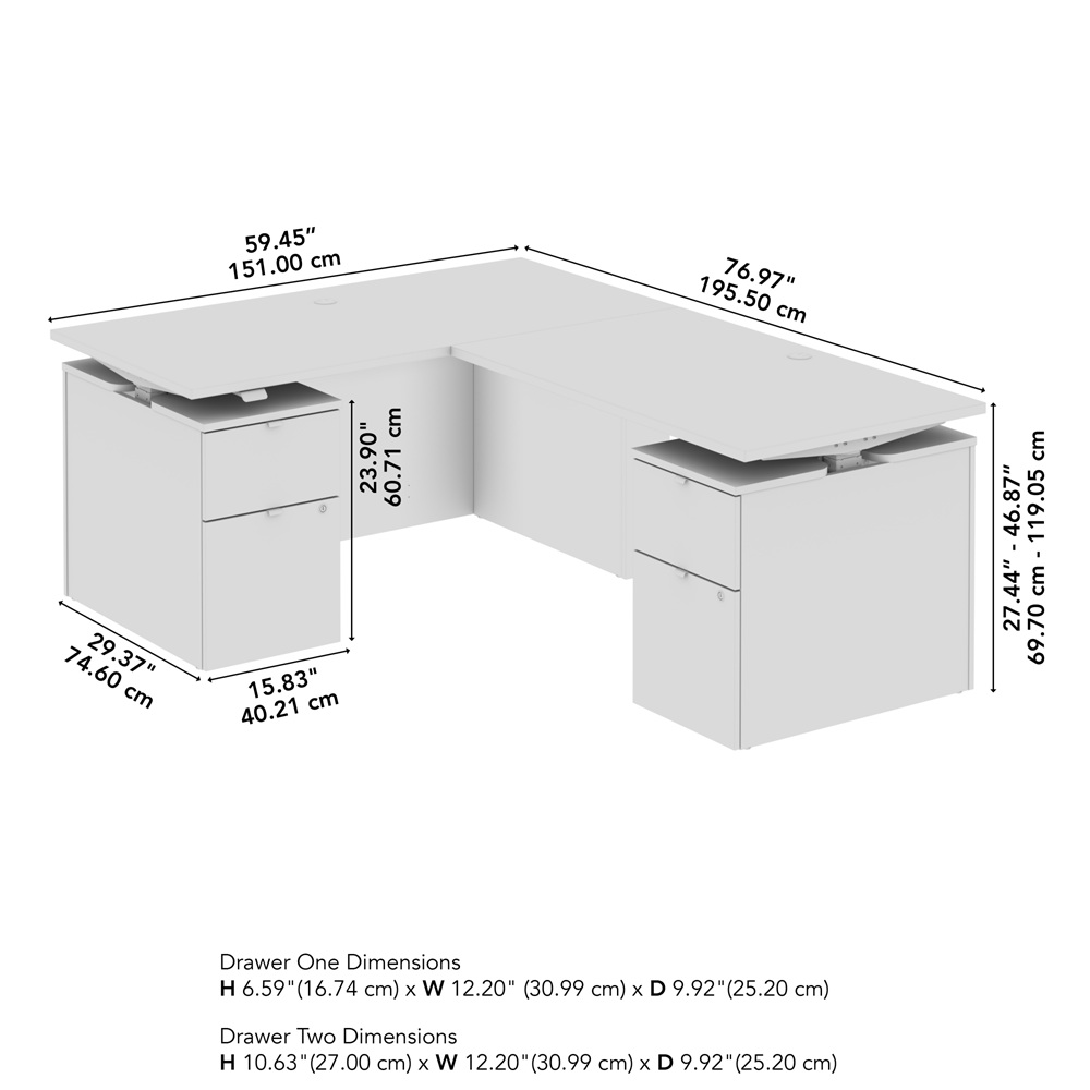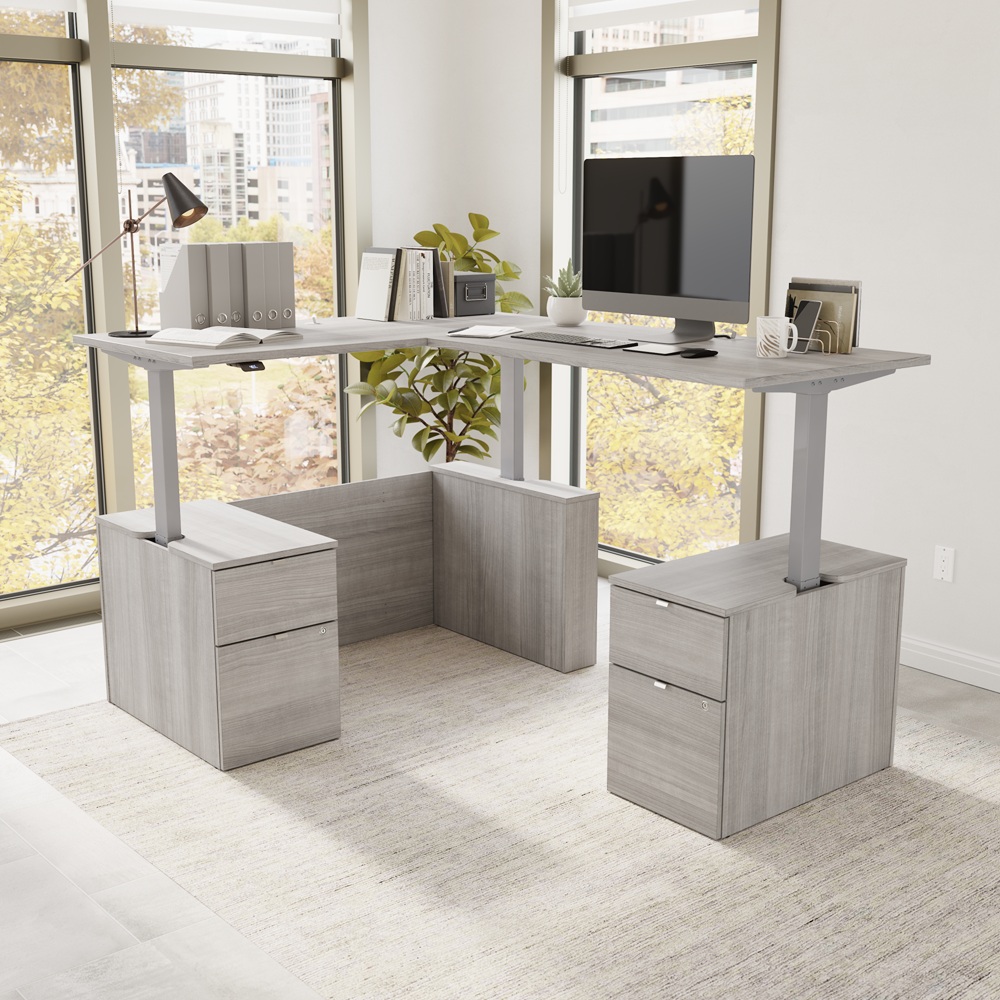 BBF Stratus 60" x 78" Platinum Gray w/ Metallic Gray Base Height Adjustable L Shaped Standing Desk with Drawers