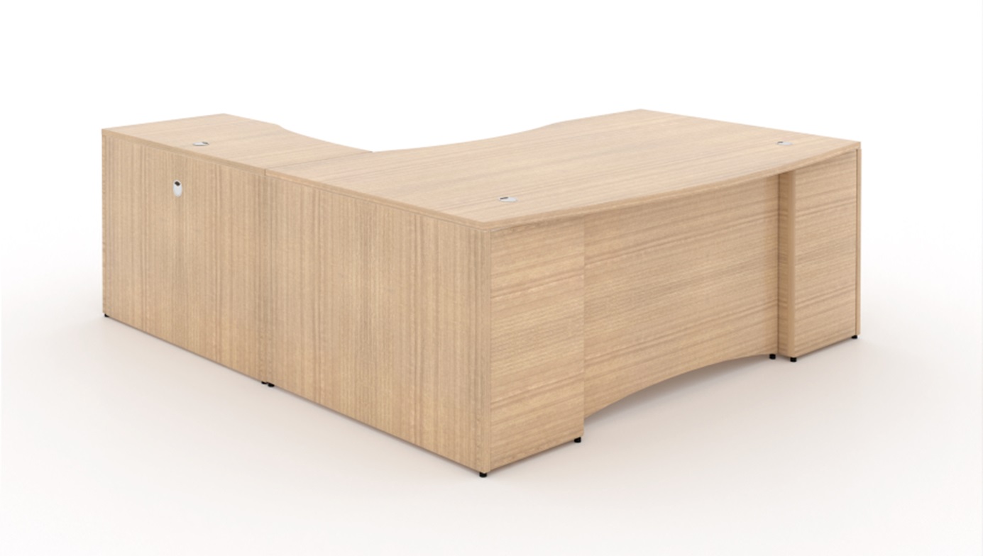 Corp Design Miele 72" L-Shaped Bow Front Desk w/Curved Laminated Modesty Panel - Finish: Miele