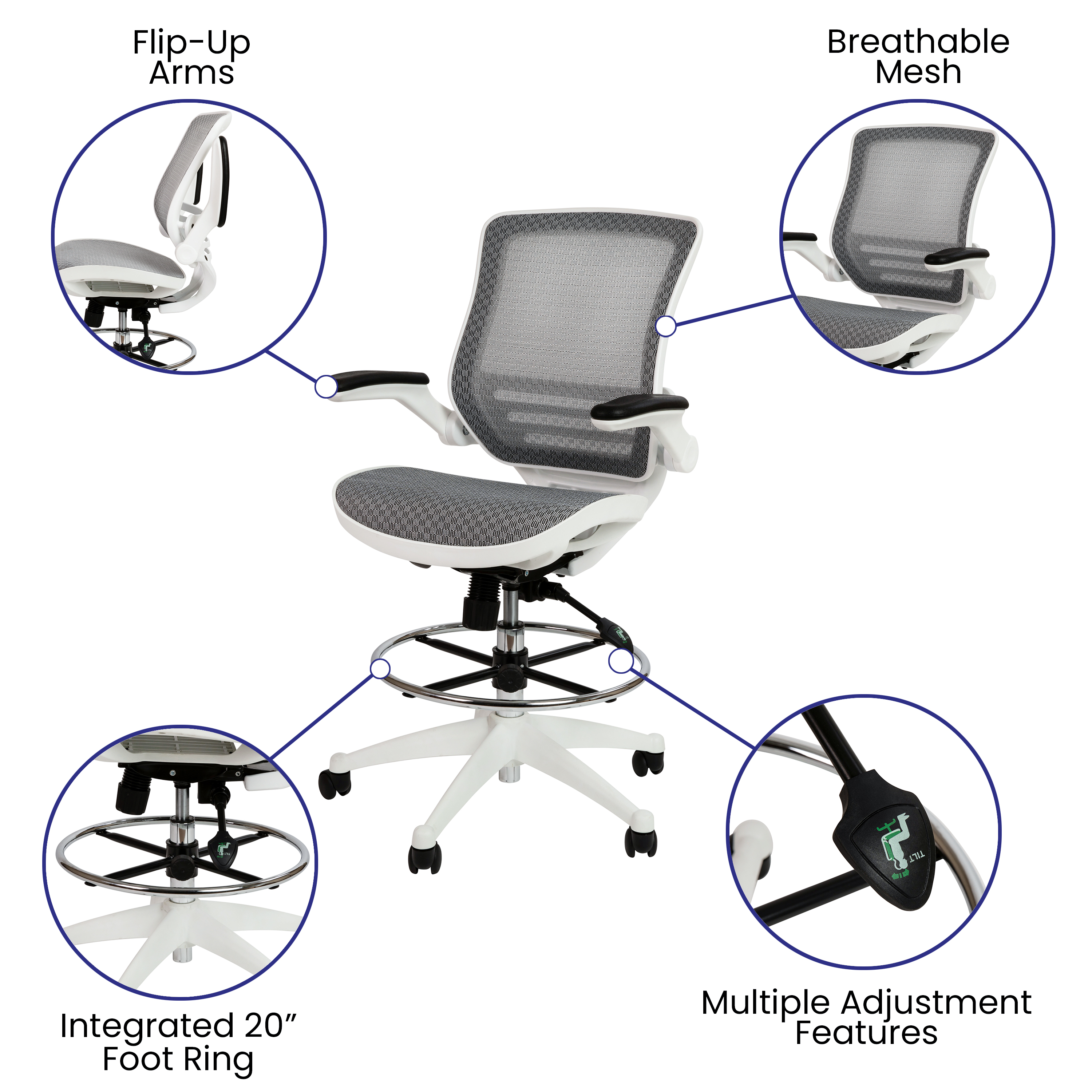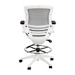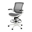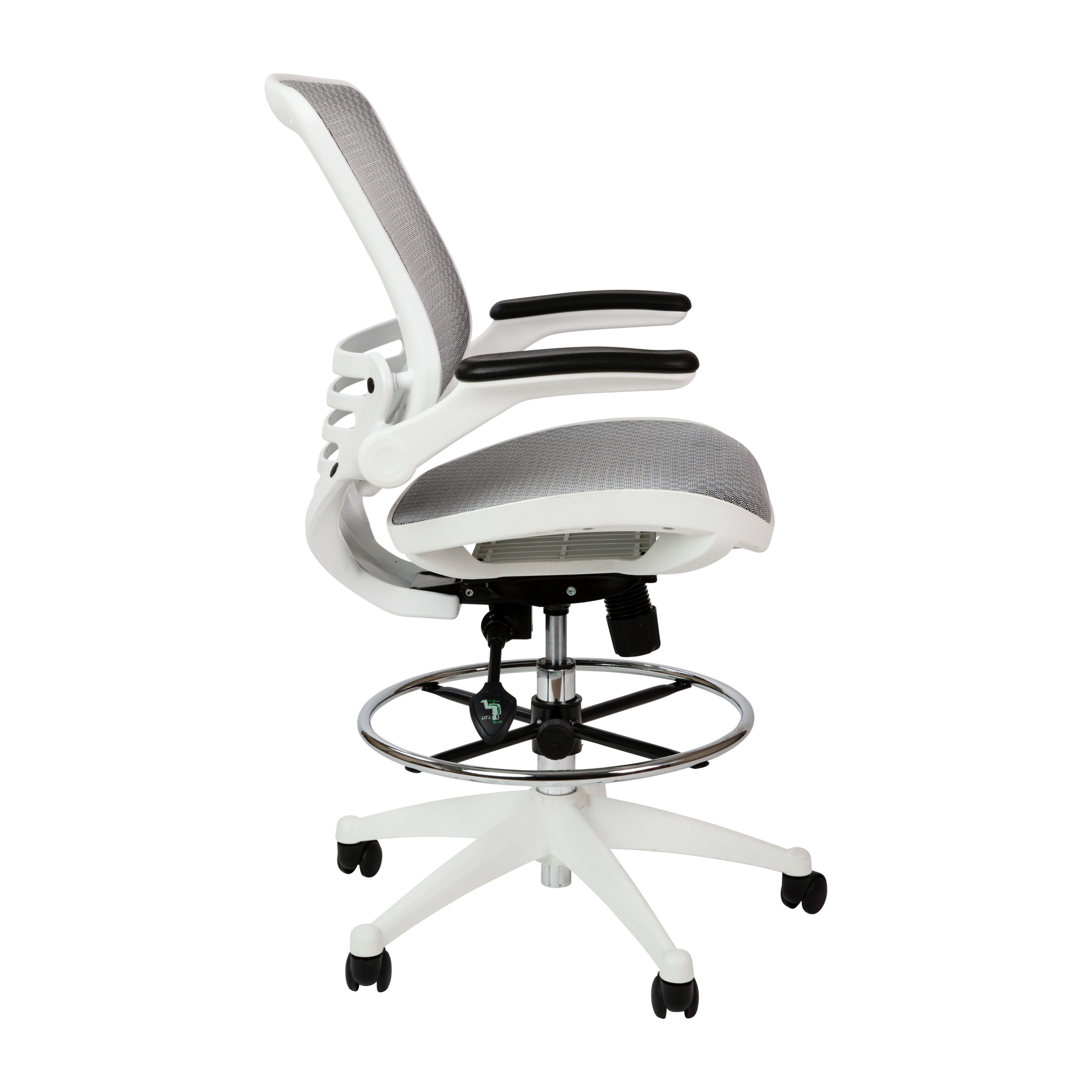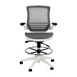 Flash Mid-Back Transparent Gray Mesh Drafting Chair with White Frame and Flip-Up Arms - BL-LB-8801X-D-GR-WH-GG