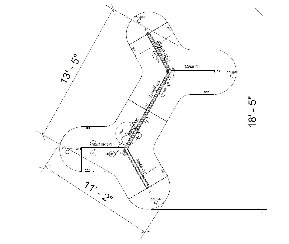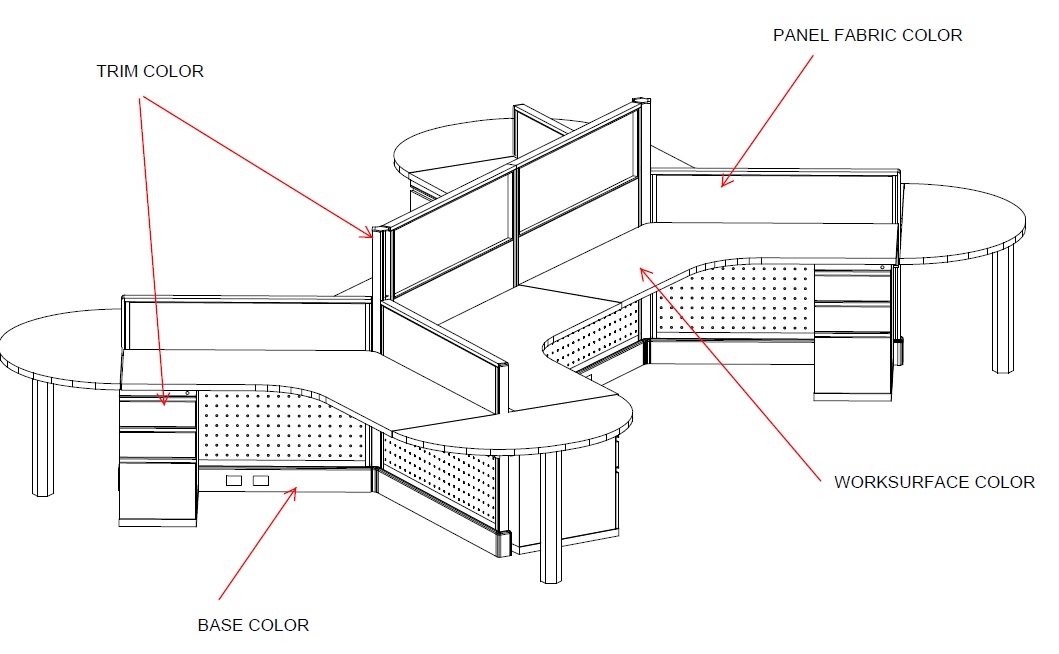 Open Plan 6 Pack 120 Degree Workstations Dogbone Shape Typical 11